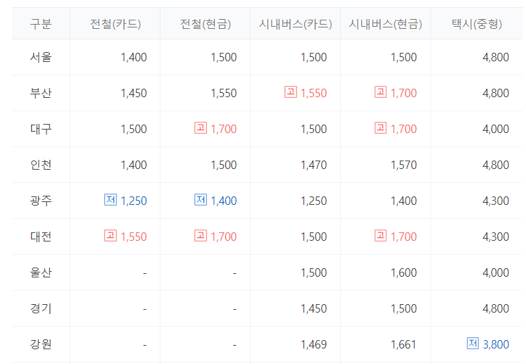 지역에 따라 조금씩 차이가 있지만 현재 교통비는 1회 탑승 시 1,500원~1,700원대를 유지하고 있습니다. 매일 등하교 또는 출퇴근하는 학생과 직장인이라면 이러한 금액도 쌓이면 꽤 많은 비용이 발생하는데요.