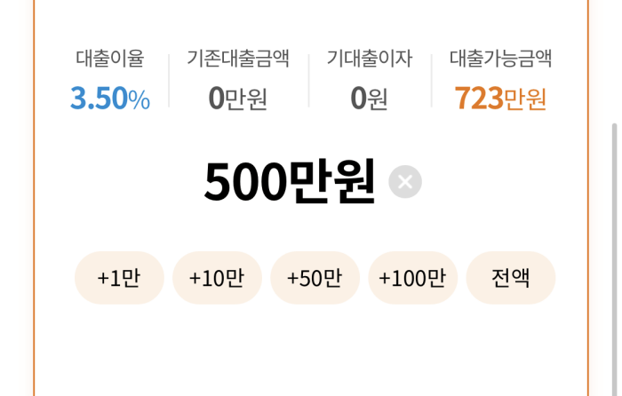 아래쪽으로 내려보면 대출금리도 확인할 수 있습니다. 대출이율은 3.5%로 일반적인 신용대출 금리에 비해 낮은 편에 해당합니다.