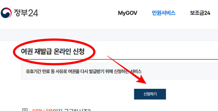 정부 24 사이트에 접속하여 여권 재발급 온라인 신청에 들어가세요. 회원가입하거나 비회원으로 신청을 진행할 수 있습니다. 비회원으로 하더라도 인증 절차가 필요하기 때문에 (공동/금융/민간) 인증서가 있어야 합니다.