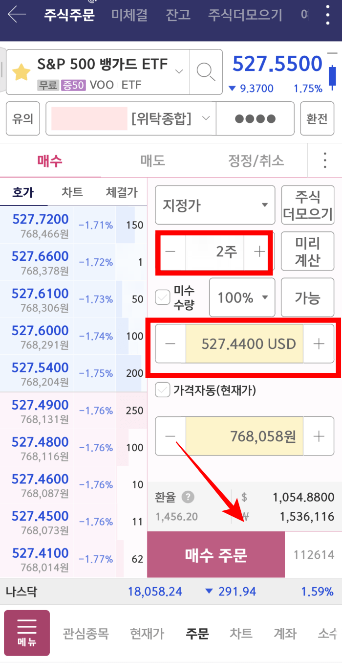 3. VOO 매수 주문(시장가 주문 추천)